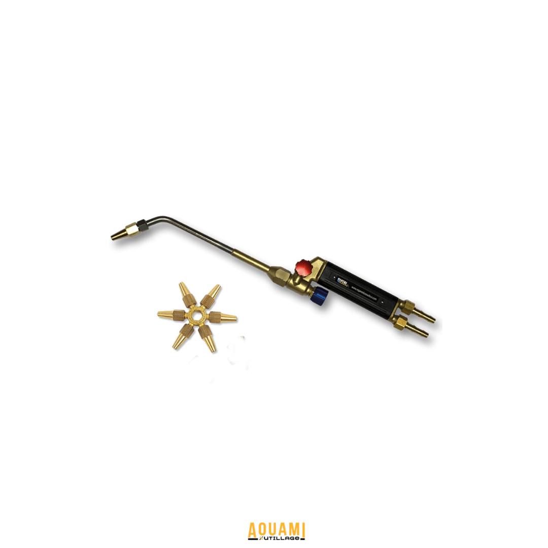 Double entrée oxygène / acétylène pour une flamme précise et puissante.