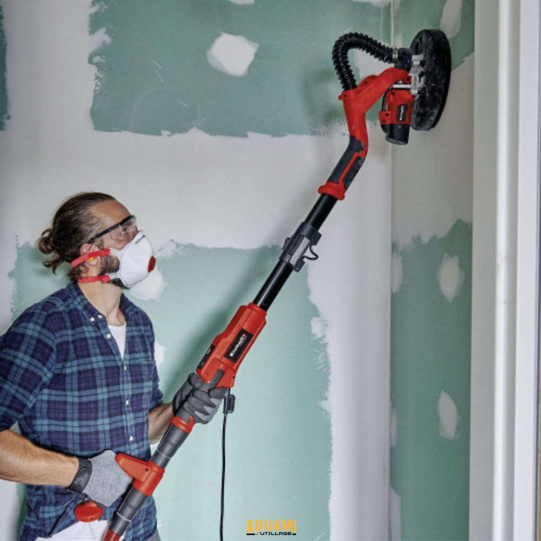 La ponceuse murale télescopique 950W Ø 215 mm, aussi appelée girafe, est l’outil idéal pour le ponçage des murs, plafonds et cloisons en plâtre. Grâce à son bras télescopique réglable et à son moteur puissant, elle permet un travail rapide, homogène et sans effort, même sur les surfaces en hauteur.