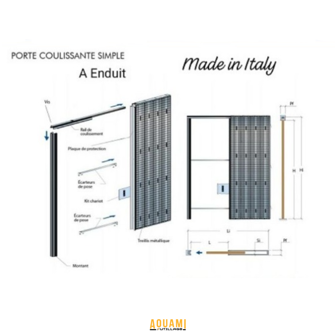 • Kit complet prêt à poser pour porte coulissante encastrée.